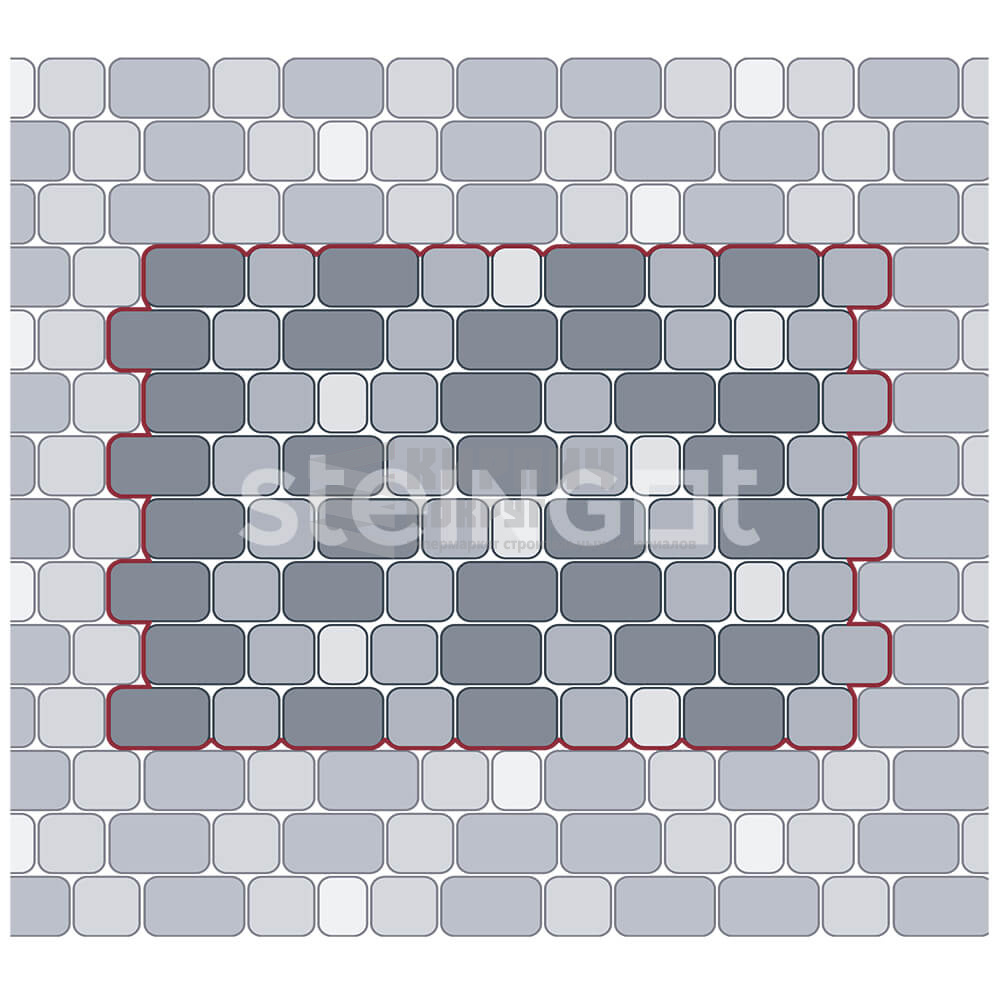 Элегантная и практичная форма состоит из трех разных камней среднего формата. Дизайн разработан так, что узор мощения выглядит с первого взгляда лаконично и гармонично, но при этом совершенно не скучно благодаря грамотно смещенной симметрии всего узора мощения.